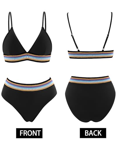 • Features - Featuring a sexy triangle bikini top with a unique color block striped webbing trim, and high cut bikini bottoms, adding a stylish edge to your beachwear collection
