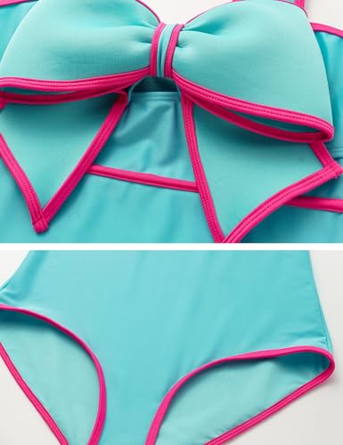 FLAXMAKER Bright Teal One Piece Swimsuit Women's Bow-tie Decor One Piece Bathing Suit 6
