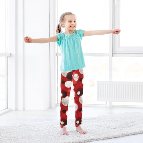Polka White Dots on Red Background Kids Baby Girls Cotton Pants Stretch High Waisted Lounge Pants Gym 4