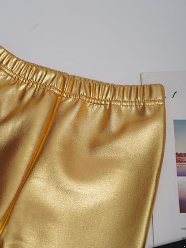 Kids Girls Shiny Metallic Leggings Fleece Elastic Waistband Skinny Yoga Pants Stretchy Dance Tights 4