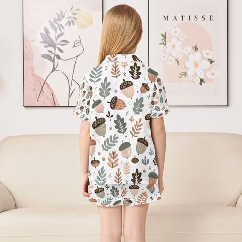 senya Forest Acorn Satin Summer Pajama Sets Silk Short Sleeve Button Down Sleepwear 6