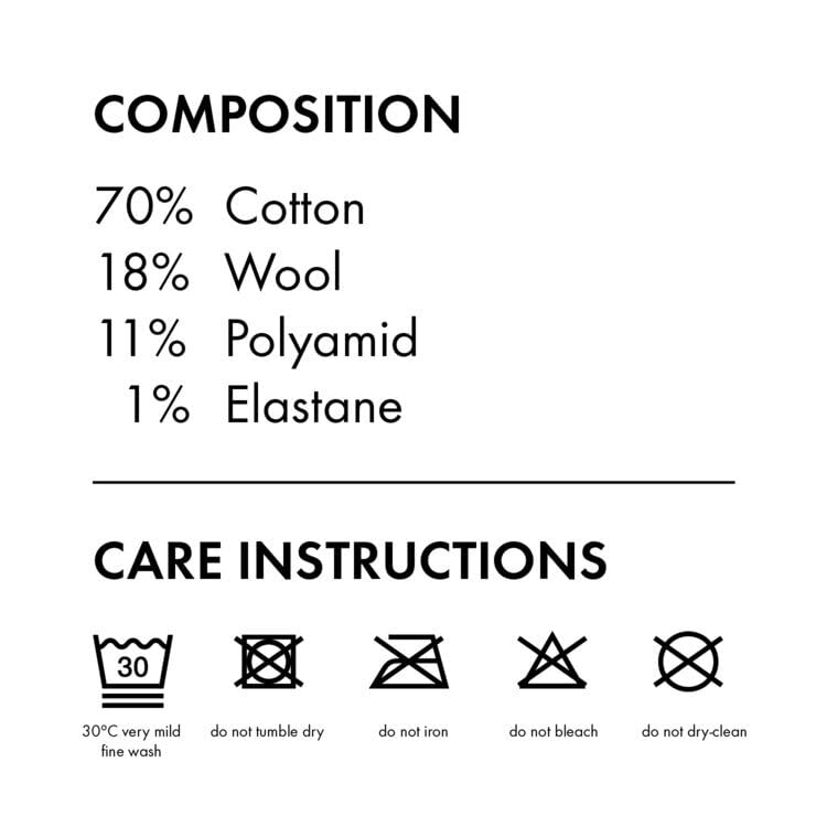• Fabric type: 70% Cotton, 18% Wool, 11% Polyamide, 1% Elastane