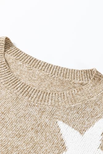 HOT ! Women's Khaki Star Pattern Drop Shoulder Plus Size Sweater - Casual Winter Knit