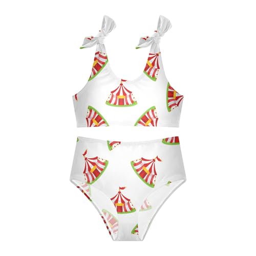 Exnundod Red and White Striped Circus Girls Swimsuit Bathing Suit Two Piece Bikini Sets Swimwear 3-12T 1