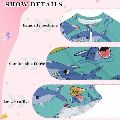 QUGRL Long Sleeve One Piece Ruffle Swimsuit for Girls Size 5-6 Seamless Pattern with Shark Girl Rashguard Shirt Bathing Suit with UPF 50+ Sun Protection 5