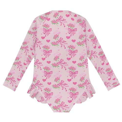 Pink Bows Flowers Girls Long Sleeve Rashguard Swimsuit UV Protection One-Piece Swimwear Bathing Suit B0405117 1