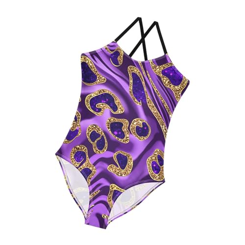 Purple Leopard Golden Wavy Stripes Girls One Piece Swimsuit Beach Swimwear 20861913 1