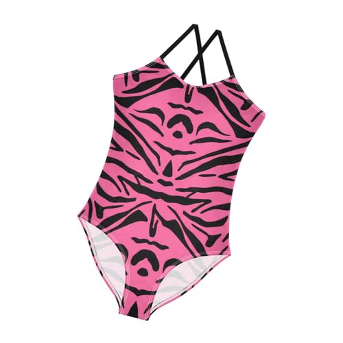 Zebra Stripes Pink Black Girls One Piece Swimsuit Beach Swimwear 20862025 2