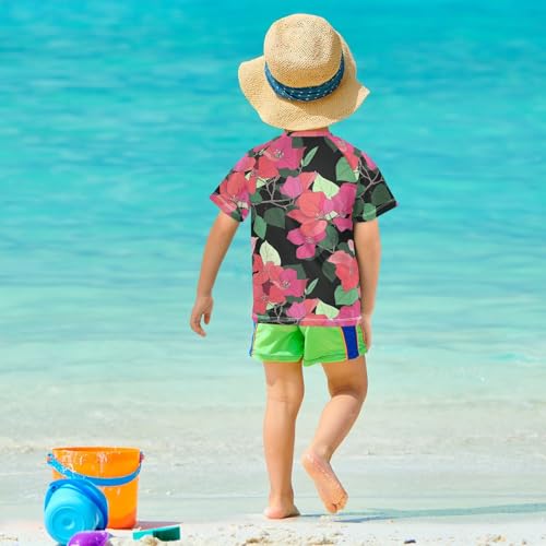 ALAZA Kids Rash Guard Girls Toddler Swim Shirts Short Sleeve Bougainvillea Flowers UPF 50+ 3T 5