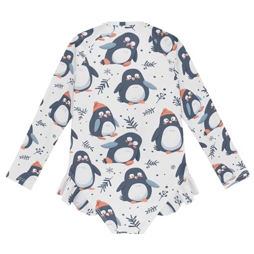 Cute Penguins Seamless Girls Long Sleeve Swimsuit Rash Guard One Piece Bathing Suits Zipper 3-12T 3