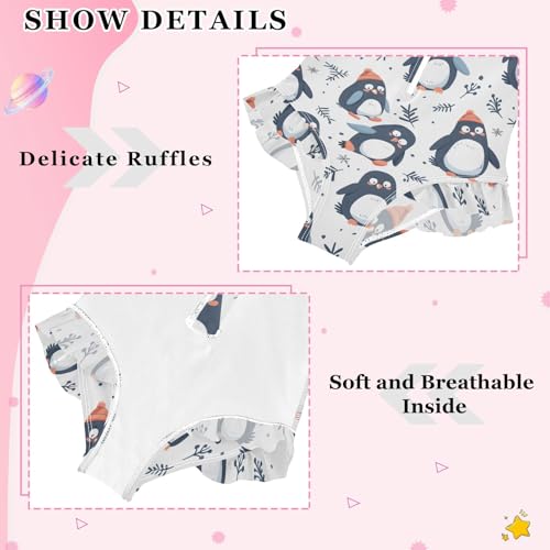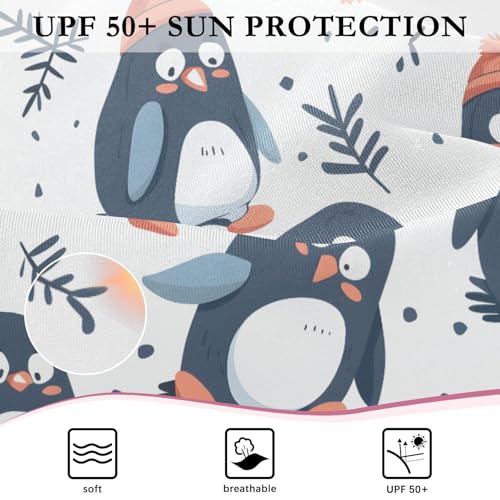 Cute Penguins Seamless Girls Long Sleeve Swimsuit Rash Guard One Piece Bathing Suits Zipper 3-12T 5