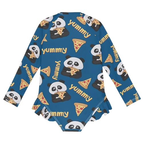 ALAZA Toddler Swimsuit Girl Bathing Suit Swimwear Rash Guard Panda Eating Pizza Long Sleeve 3T 6