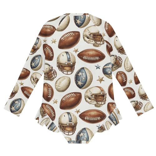 ALAZA Brown Rugby Star American Football Girls One Piece Swimsuit Long Sleeve Rash Guard Swimsuits UV 50+ Swimwear Zipper 1