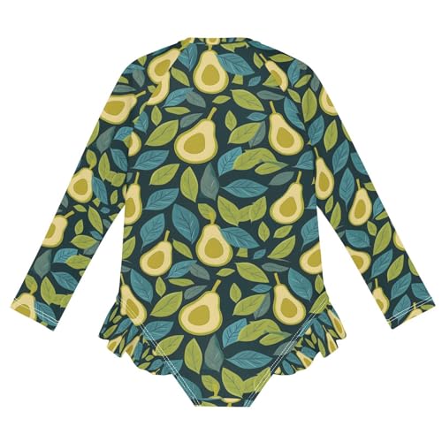 ALAZA Avocado Green Leaf Girls One Piece Swimsuit Long Sleeve Rashguard Swimsuit UV 50+ Swimwear Zip 1