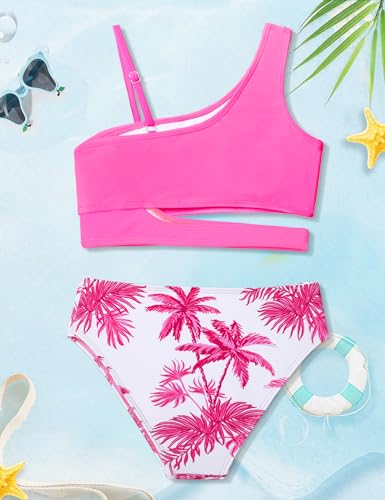 • 👙🏖️Unique Bathing Suit: The two piece swimsuits is design cutout, removable padding and with adjustable spaghetti strap on one side. Hawaiian style high waist bikini bottoms for added comfort, Bright colors make your child the most striking princess on the beach!