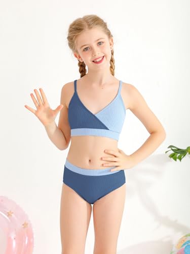 Girl's 2 Piece Swimsuit Solid Spaghetti Strap Bikini Sets Beach Bathing Suit Swimwear for Teen Girls 2