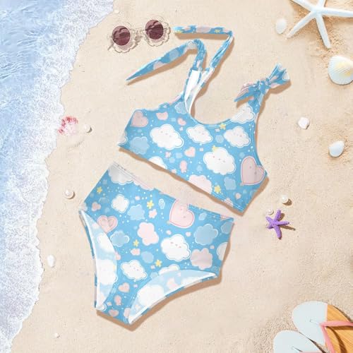 Clouds on Blue Background Girls' Two Piece Kids Bikini Set Scoop Neck Bathing Suit Swimwear Adjustable Shoulder Strap 5