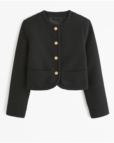 More information about Women's Tweed Jackets Long Sleeve Crew Neck Button Down Cropped Jacket Coat with Pockets