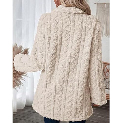 Winter Women's 2023 Double Breasted Lapel Neck Flannelette Coat, Long Cardigan Faux Fur Warm Outwear Jackets 3