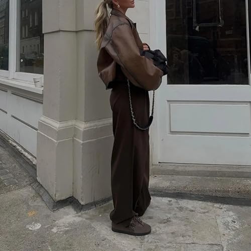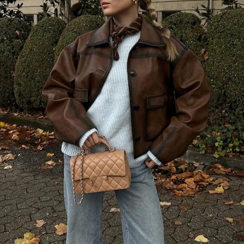More information about Dawery Khaki Long Sleeve Faux Leather Crop Jackets Women Winter Vintage Pocket Coat Female Warm Autumn Winter Streetwear