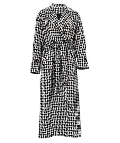 HOT ! SOMTHRON Women's Houndstooth Trench Coat Double Breasted Notch Lapel Jacket Pea Coat Winter Long Overcoat with Belt