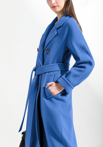 chouyatou Women's Winter Double Breasted Wool Coat Business Casual Midi Long Winter Trench Coat with Belt 4