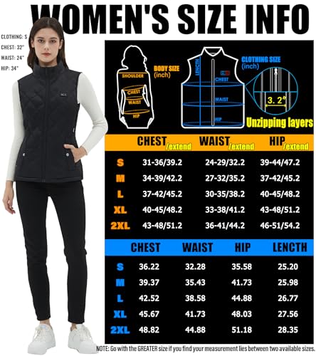 • 【+35% Larger Heating Size & Higher Temperature】: Eoyekli womens heated vest have 6 pieces carbon fiber heating panels. That makes up a 193.5 Square inch heating area which 35% larger than others on the market. The heating temperature range from 122°F to 149°F which will make a better work for the warmth you needed, It is much more comfortable than others vest temperature range from 99°F to 130°F.
