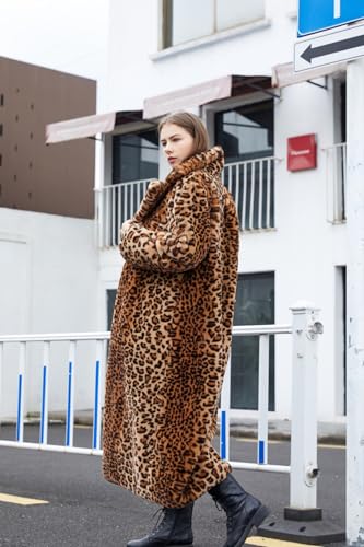 Women's Faux Fur Full Length Leopard Overcoat Warm Soft Coat Outwear Jacket Topcoat 6