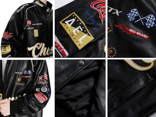 More information about Aelfric Eden Embroiderey Racing Leather Bomber Jackets Oversized Patchwork Vintage Racer Moto Jackets
