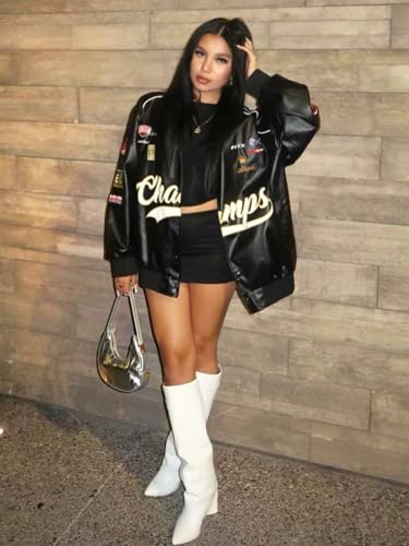 • Oversized Moto Jackets : Vintage trendy oversized casual jackets are pretty easy match with your baggy jeans, sweatpants, shorts, slacks, skirts, etc. Cropped motorcycle jakcets also can be paired with your crop tops, y2k shirts, etc. Simple way to wear, fashionable style.