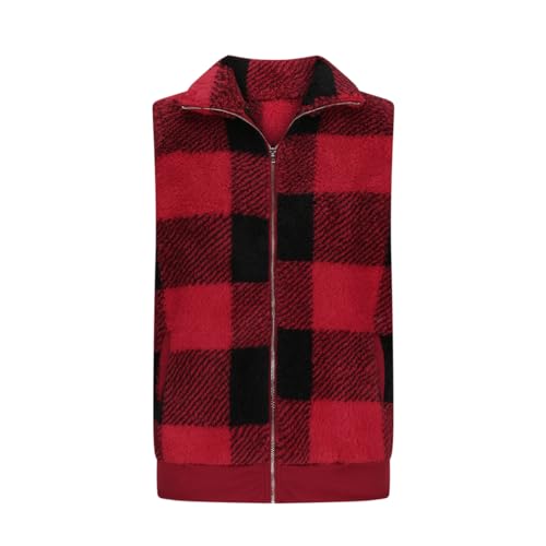 HOT ! Womens Fashion Plaid Fleece Vest Casual Fuzzy Sleeveless Fuzzy Sherpa Vest Fluffy Zipper Jacket Warm Outerwear