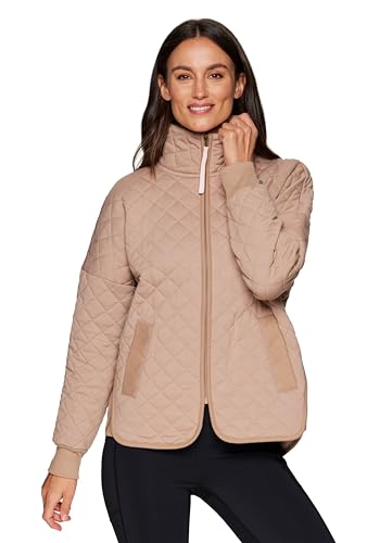 HOT ! RBX Quilted Zip Up Jacket for Women, Lightweight Mock Neck Jacket with Pockets for Hiking, Workouts, Casual Wear