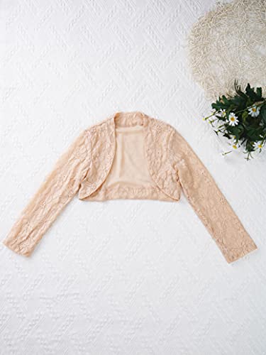 Girls Long Sleeve Open Cardigan Shrug Bolero Floral Lace Wedding Bridesmaid Dress Cover Up 6
