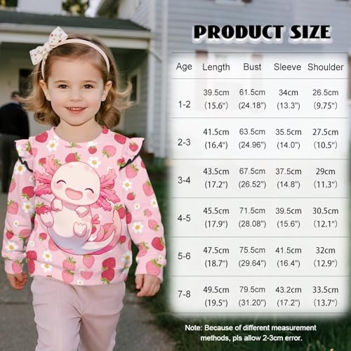 • Features: It is a crew-neck pullover sweatshirt with a comfortable and loose fit. The ruffled design on the shoulders adds a playful and cute touch to your child, highlighting their lively temperament. The long-sleeve design with elastic cuffs that can contract provides effective warmth for your child