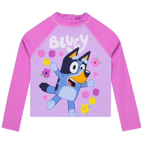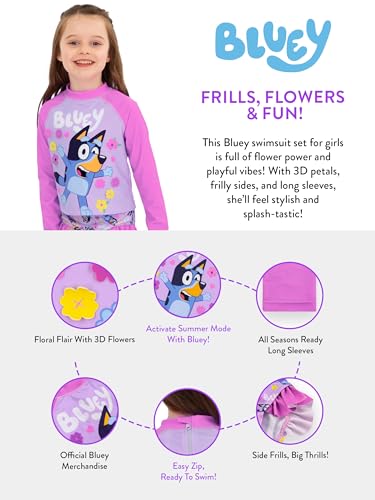 • Official Bluey Merchandise: Celebrate your child's love for Bluey with bright colors, 3D flower accents, and an energetic Bluey print on the long sleeve top—perfect for the beach, pool, or pairing with other Bluey girls clothes