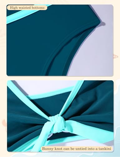 Girls Swimsuit Bikini Set and Cover Up Skirt 3PCS Bathing Suit Removable Knot Dual-Use Girls Swimsuits Size 7-16 3