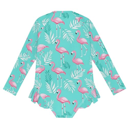 Flamingos Tropical Girls Long Sleeve Swimsuit Rash Guard One Piece Bathing Suits Zipper 3-12T 7