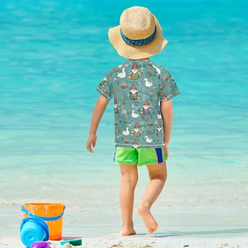 ALAZA Kids Rash Guard Boys Toddler Swim Shirts Short Sleeve Gnome Duck Cute UPF 50+ 3T 2