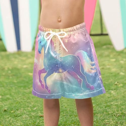 Pigsaly Boys' Swim Board Shorts Rainbow Unicorn Stars Galaxy Boy's Swim Trunks Kids Swimwear XS 4