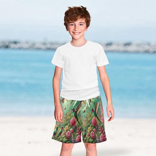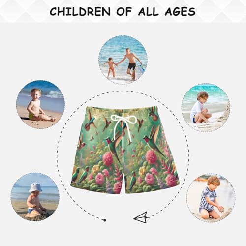 Flowers Hummingbirds Boys Swim Trunks Quick Dry Toddler Swimsuit Boy Swimwear Board Shorts Bathing Suits M 3