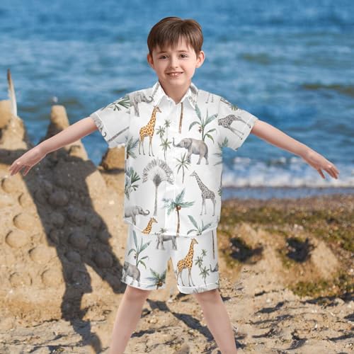 CaTaKu Boys Hawaiian Button-Down Shirts and Short Sets, Boys Summer Outfits 2 Piece Clothes Set Size 3-10T 2