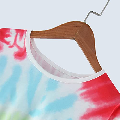 Girls Tie Dyed Tunic Tops Kids Long Sleeve Knot Front Button Casual Loose Pullover Blouse T-Shirt Tee(Red,6-7 Years) 4