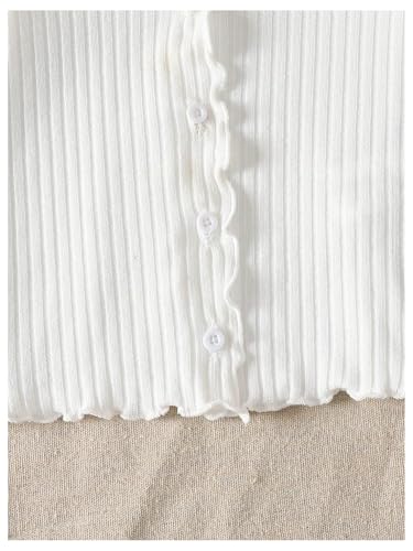 Girl's Ribbed Knit Button Down T Shirts Lettuce Trim V Neck Long Sleeve Top 4
