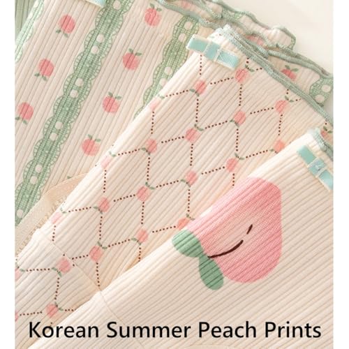 • Adorable Design & Theme: This delightful 4-pack set features breathable cotton that won't feel tight or constricting, paired with cute cartoon fruit designs inspired by Korean fashion trends. Each pair is adorned with frilly lettuce edges and an elastic waistband, creating an adorable aesthetic reminiscent of Japanese schoolgirl fashion. The ruffled edges enhance your curves gracefully, adding a touch of elegance and sophistication