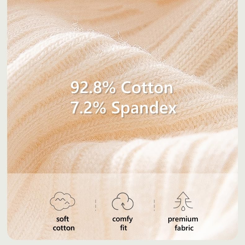 • Fabric type: 92.8% cotton and 7.2% Spandex,100% cotton crotch