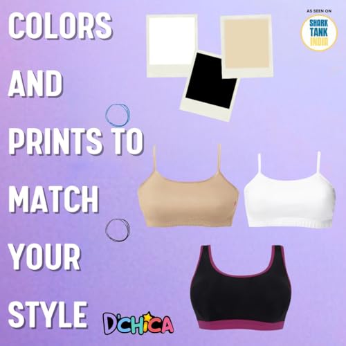 More information about DChica Girls Cotton Starter Bra | Lightweight Single Layer Training Bra for Teenagers | Printed & Solid Broad Strap Beginner Bra - Pack of 4, Large Size