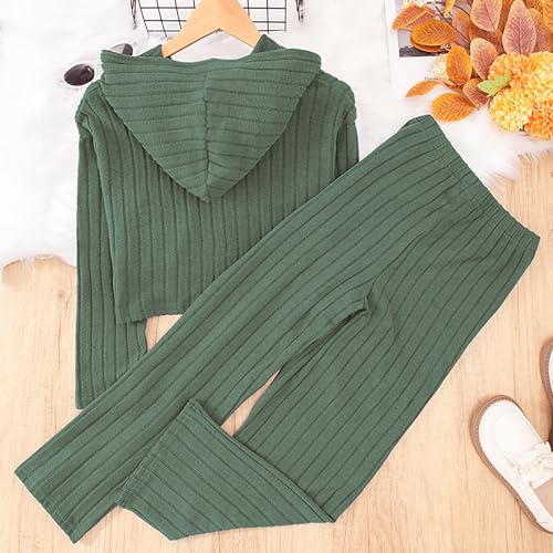 Kids Girls Clothes Outfits 2025 Tracksuit Solid Knit Ribbed Long Sleeve Crop Top and Flare Pants 2 Piece Sweatsuits 5
