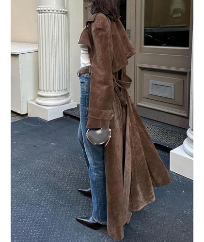 More information about SOMTHRON Women's Faux Suede Long Trench Coat Notched Lapel Double Breasted Jacket Pea Coat Overcoat with Belt