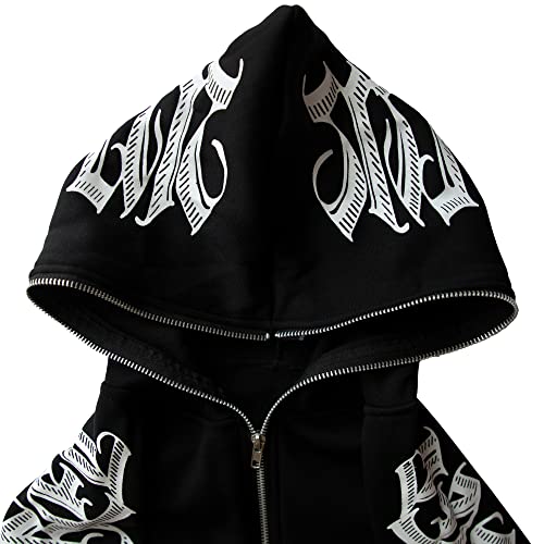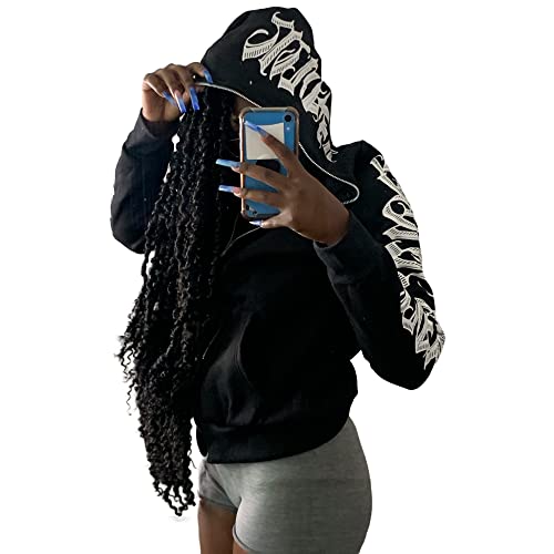 More information about Women Zip Up Hoodie Y2k Letter Graphic Print Rhinestone Oversized Hoodies Gothic Jacket Vintage Streetwear