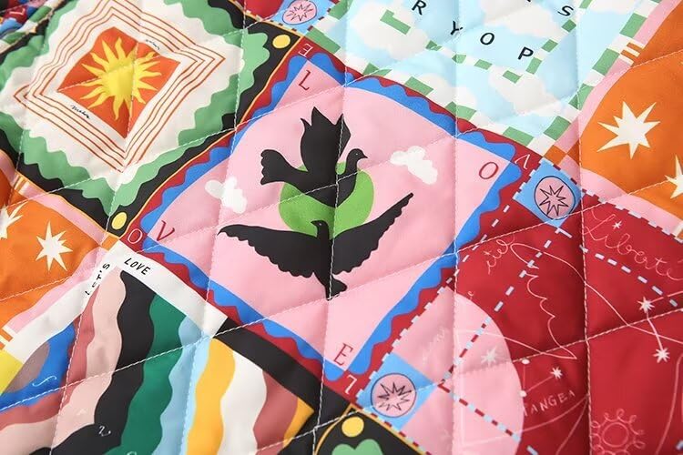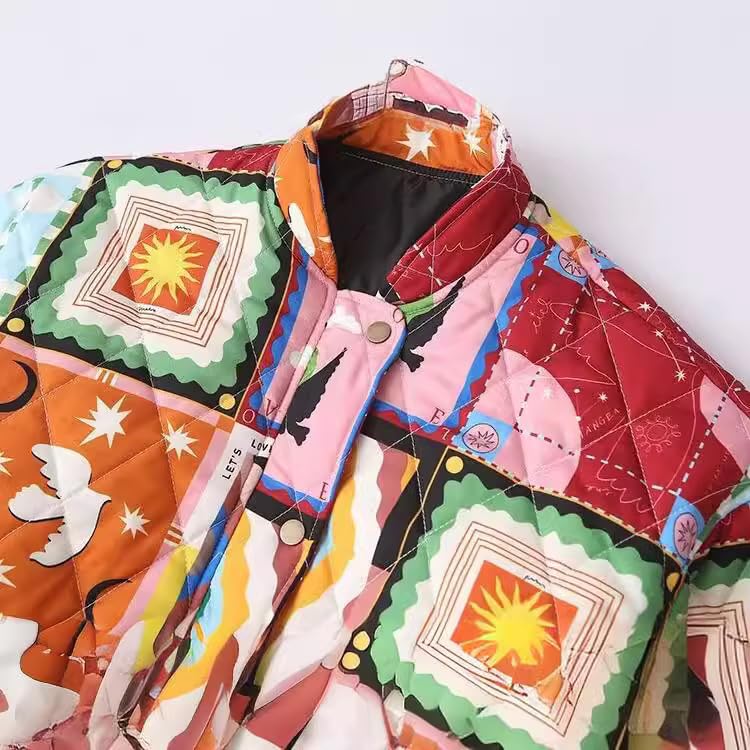 HOT ! Women Quilted Vintage Jackets Puffer Aesthetics Coats Coquette Colorblock Cardigan Stand Collar Colorful Outerwear